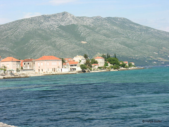 Blick auf Orebic von der Fähre aus gesehen