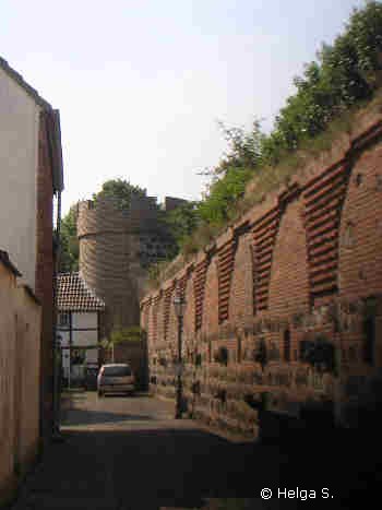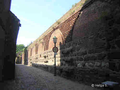 Verteidigungsanlage einbezogen war. In ihrem ínnersten Winkel steht die Burg,